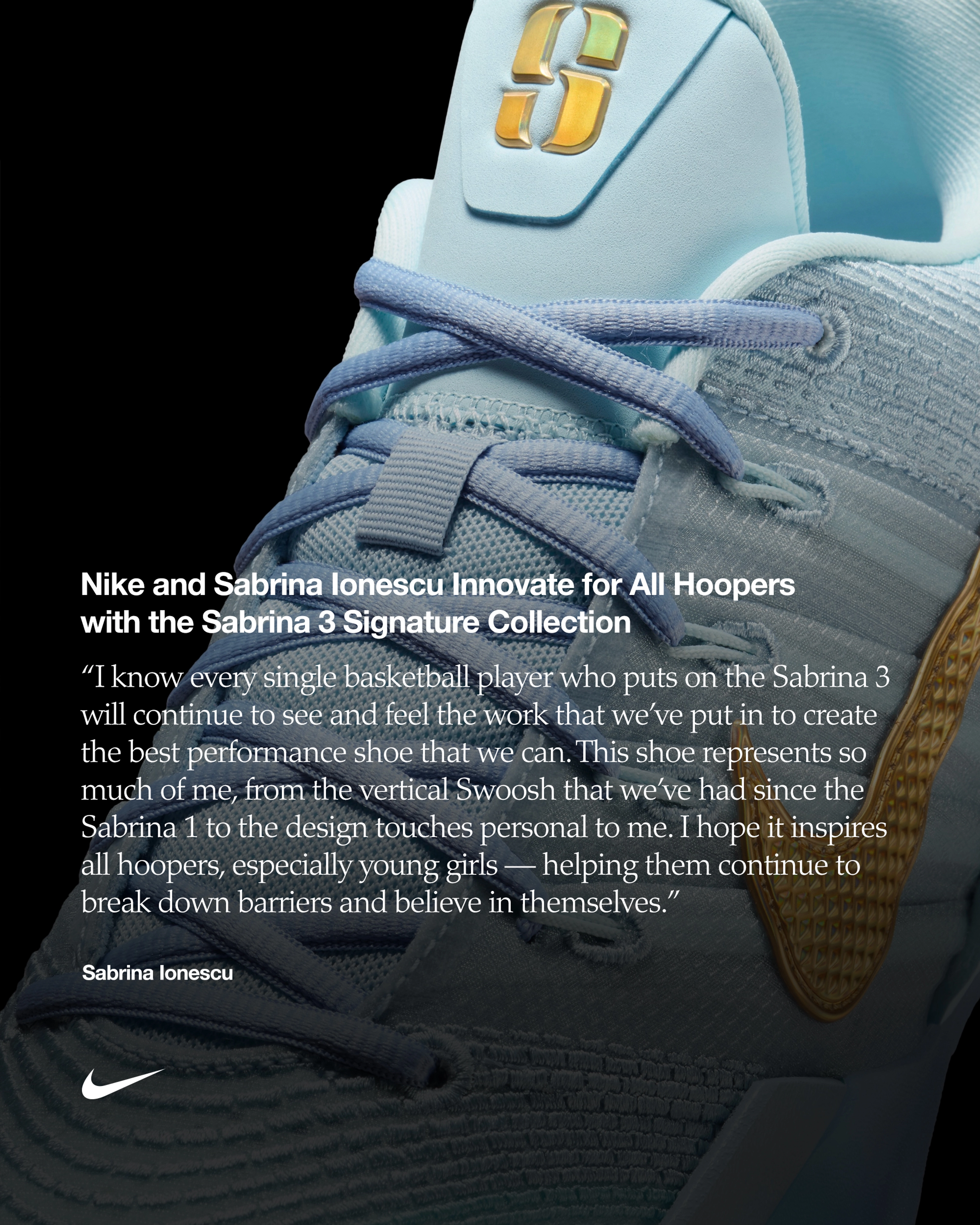 Nike 携手萨布丽娜·约内斯库推出全新 Sabrina 3 签名系列,为所有篮球爱好者持续创新