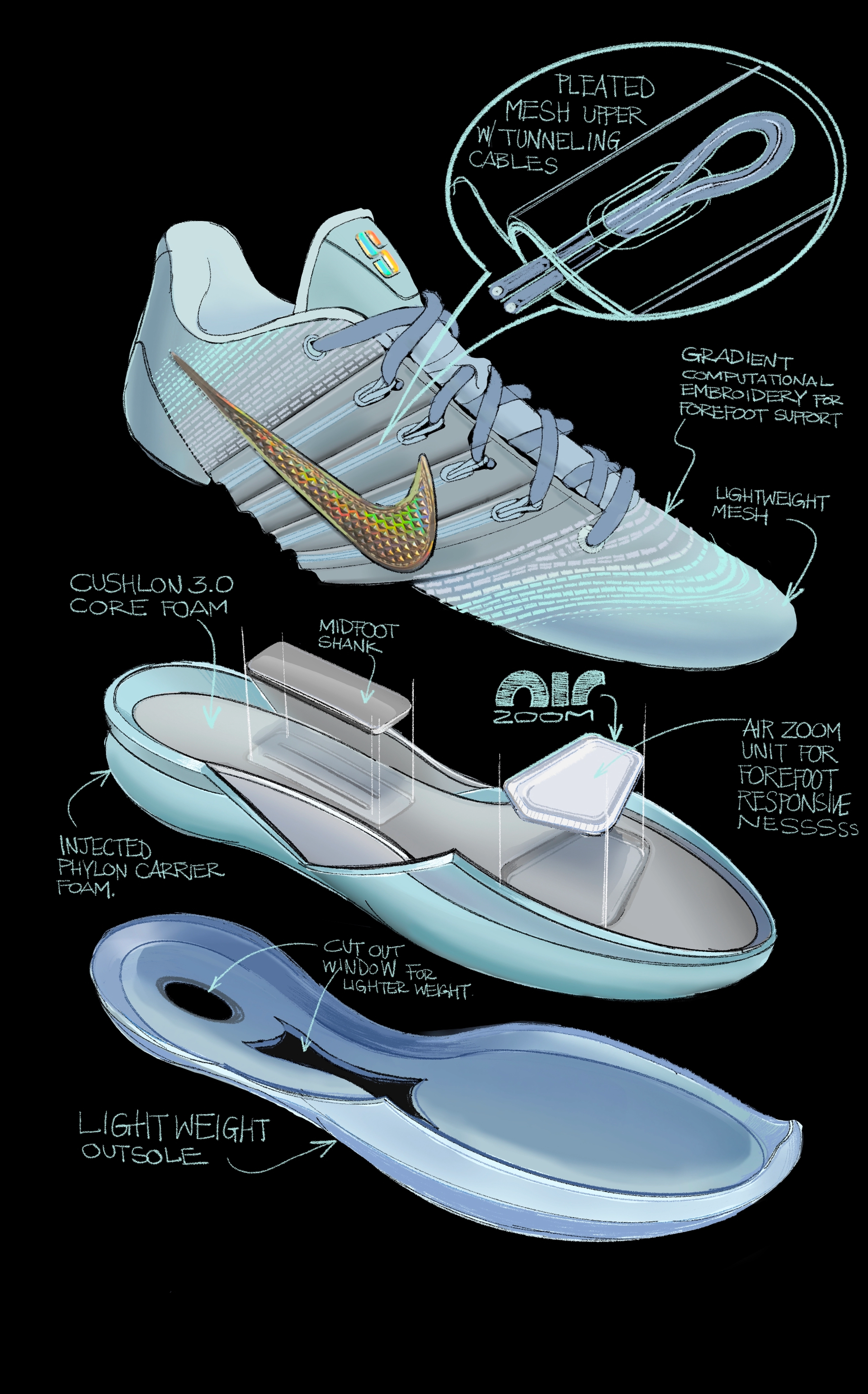 Nike 通过配色故事、材质和工艺丰富这些鞋类创新,完美诠释新生代篮球运动员在赛场上展现的创意与自信能量。