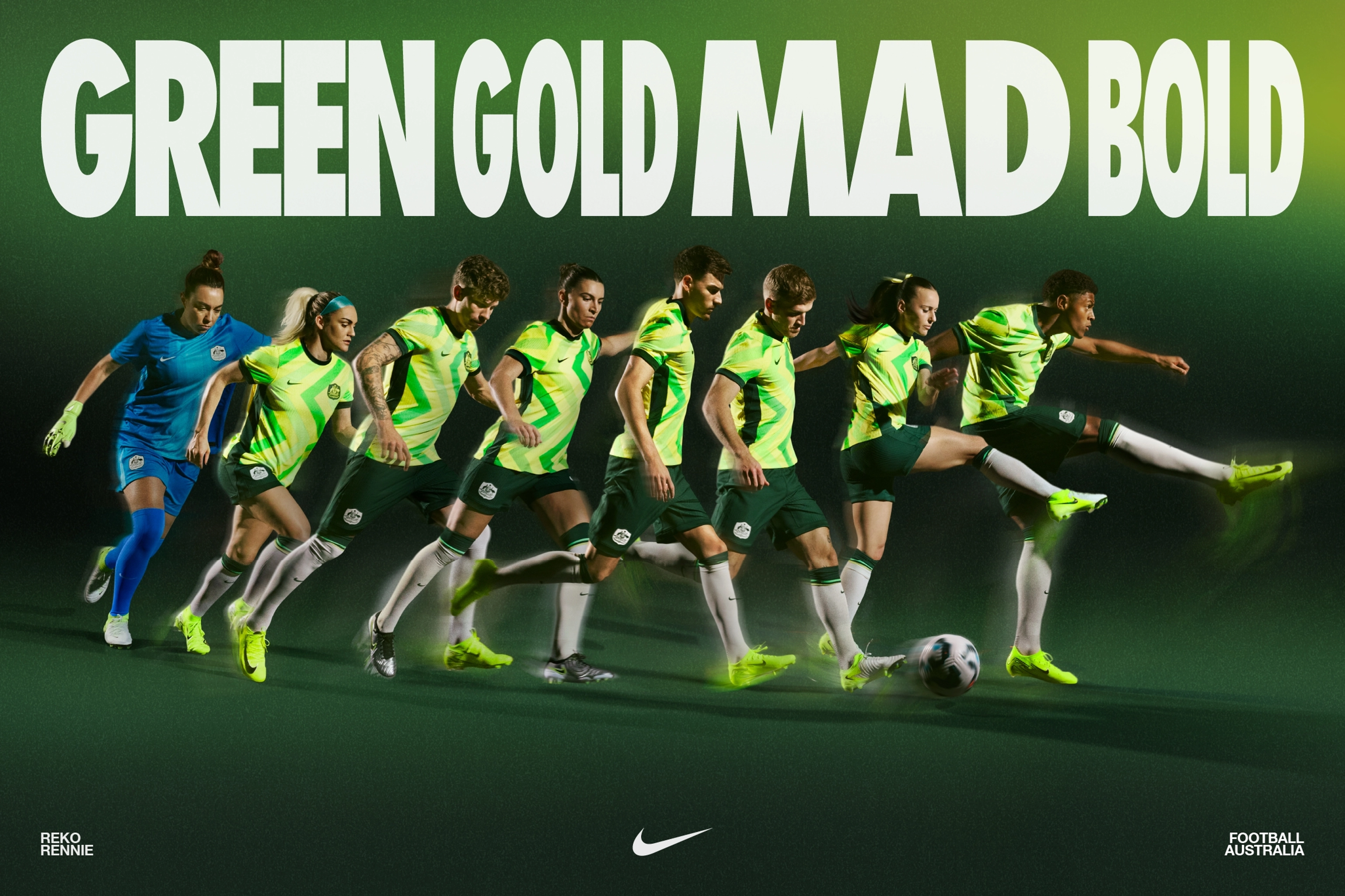 Nike 太平洋區副總裁兼總經理 Ashley Reade 表示:「自品牌首次支持這項精彩運動以來,Nike 足球就一直是變革的驅動力。 Nike 很榮幸能與 Reko Rennie 和澳洲足球協會合作推出此系列,期待看到澳洲人團結相聚,為身穿全新綠色和金色球衣的國家代表隊喝采。」